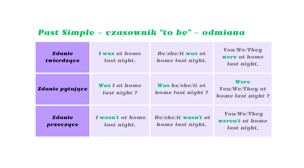 ✅ Were you at home last night? – Czy byłeś w domu zeszłej nocy?