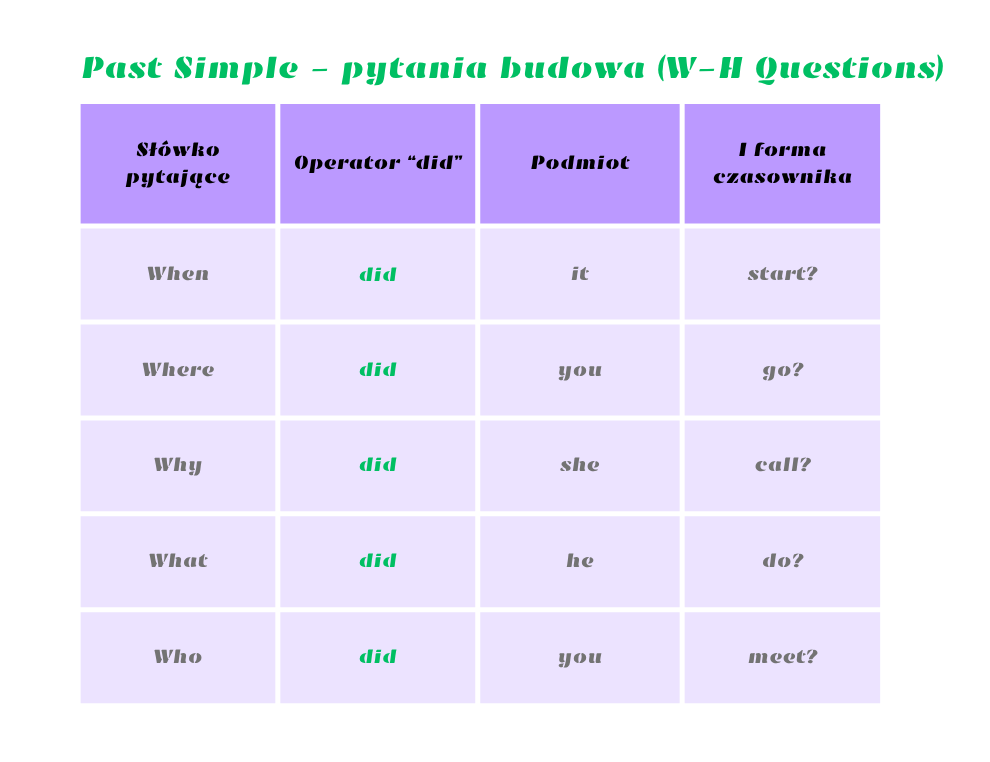 - Past Simple – pytania